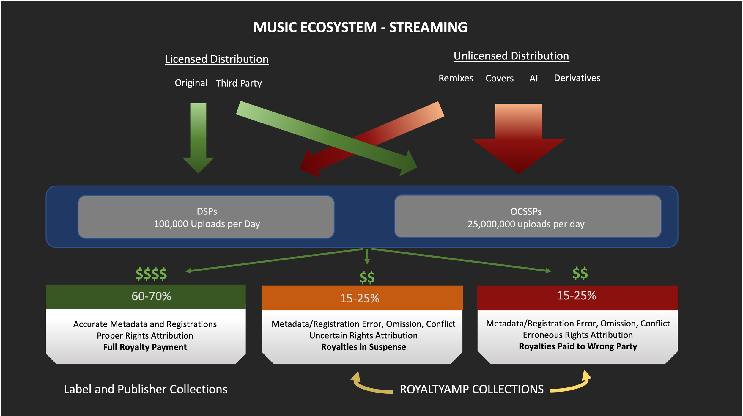 The majority of content uploads that occur across DSPs and OCSSPs each day DO NOT contain complete or accurate rights ownership and administration data. That would not be an issue if there were an authoritative and dynamic real-time database that contained this information, there IS NOT.